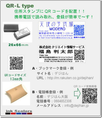 QRコード付 スタンプ ・住所印+QRコードスタンプ付・Ltype補充インク付・メール便では送料は無料です!