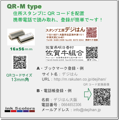 オリジナルスタンプ・デジはん住所印+QRコードスタンプ付・Mtype補充インク付・メール便では送料は無料です!